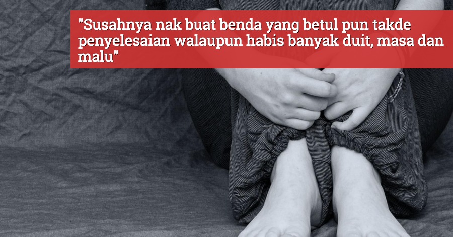 Sedara semua suruh saya report. Tapi Tuan Syed, waktu kes 1, saya habis banyak masa, duit ke sana ke mari, malu lagi, anak sugul, senyap. Susahnya nak buat benda yang betul pun takde penyelesaian. Jadi kes 2 ni saya tak nak report.