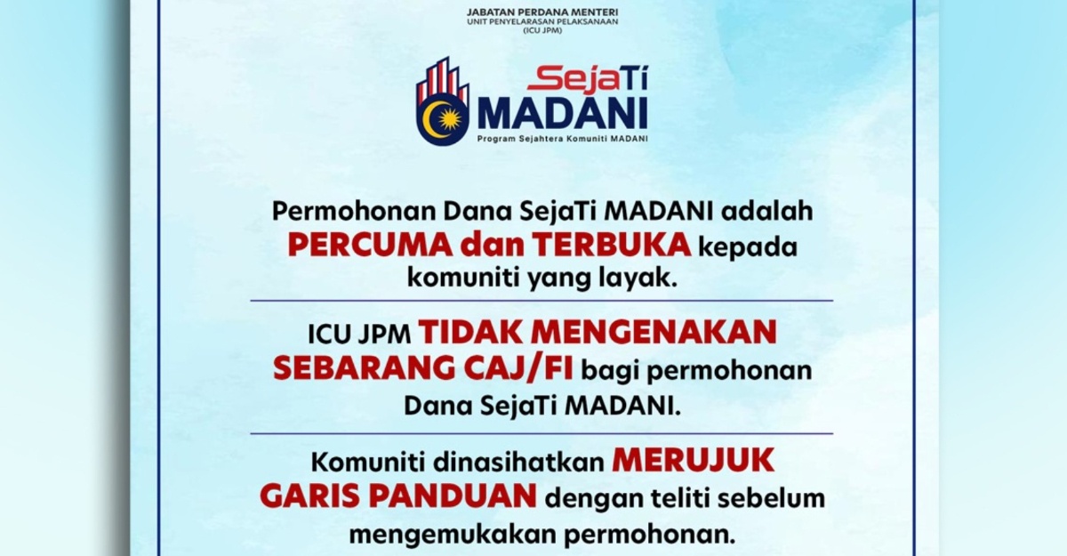 “Saya sarankan kepada semua yang masih belum memohon dana SejaTi MADANI untuk segera berbuat demikian, dengan mendapatkan maklumat melalui laman web SejaTi MADANI yang disediakan,” katanya pada sidang media selepas menghadiri Hari Bersama Komuniti di Dewan Sekolah Jenis Kebangsaan (Cina) Chung Hwa, di sini hari ini.