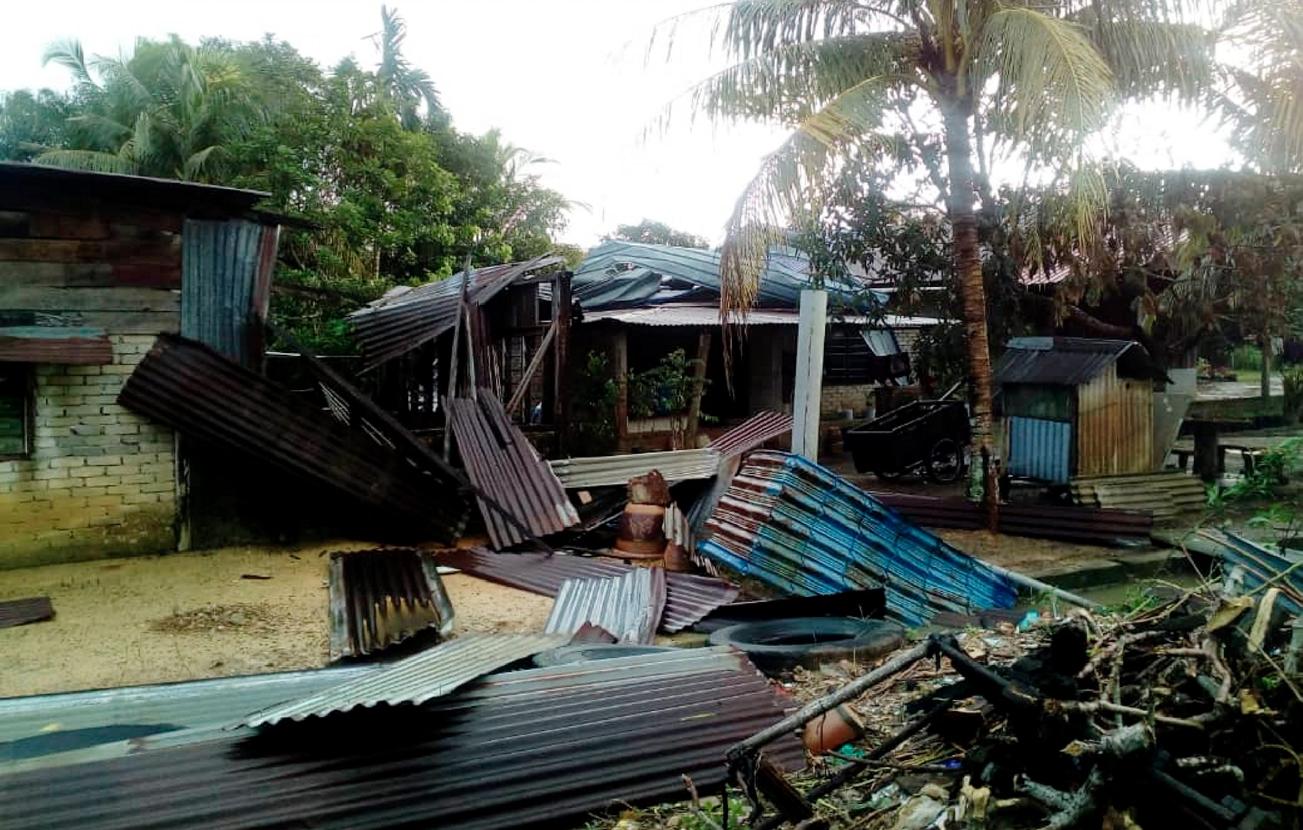 “Kejadian angin puting beliung itu berlaku lebih kurang dua minit dan saya melihat atap di bahagian depan rumah dan bilik saya sudah diterbangkan ke rumah berhampiran. Masuk kali ini sudah tiga kali rumah saya mengalami kerosakan disebabkan angin puting beliung yang kerap berlaku di kawasan ini,” kata Zainab Sharif, 63.