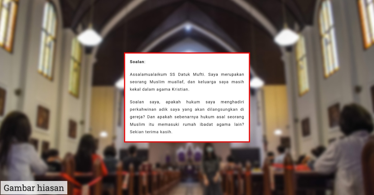 Soalan saya, apakah hukum saya menghadiri perkahwinan adik saya yang akan dilangsungkan di gereja? Dan apakah sebenarnya hukum asal seorang Muslim itu memasuki rumah ibadat agama lain? Sekian terima kasih.