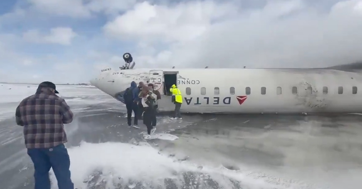 Pesawat Delta Air Lines Terbalik Ketika Mendarat Di Toronto, 15 Cedera