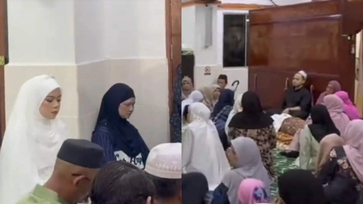 "Saya kakak pengantin dan anak kepada arwah. Mak pergi dulu 3 pagi sebab mak sakit kanser. Nikah 9 pagi. Waktu hari yang sama. Masih adik nak nikah mak tau semua tu. Tapi semua dah tertulis. Mak pergi dulu," maklum kakak Allahyarhamah.