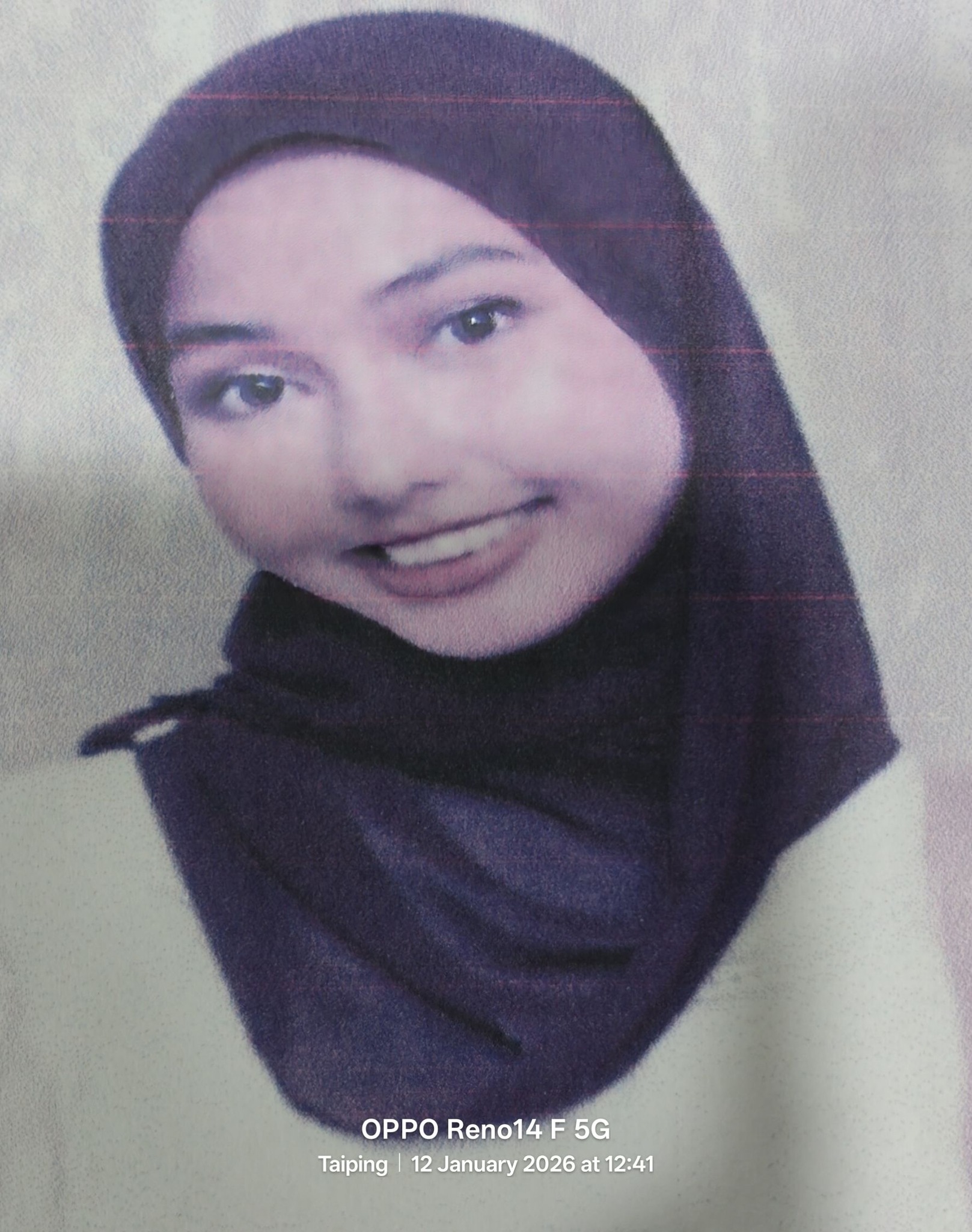 Polis Diraja Malaysia (PDRM) memohon bantuan orang ramai untuk mengesan seorang wanita berbangsa Melayu yang dilapor hilang di sekitar Changkat Jering, Taiping, Perak.