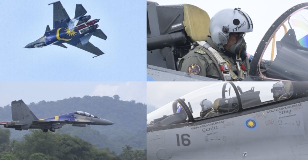 Dalam sesi yang bermula pada 1.30 tengah hari tadi, beliau membuka tirai dengan menerbangkan pesawat pejuang Su-30MKM atau turut dikenali sebagai ‘Toruk Makto’.