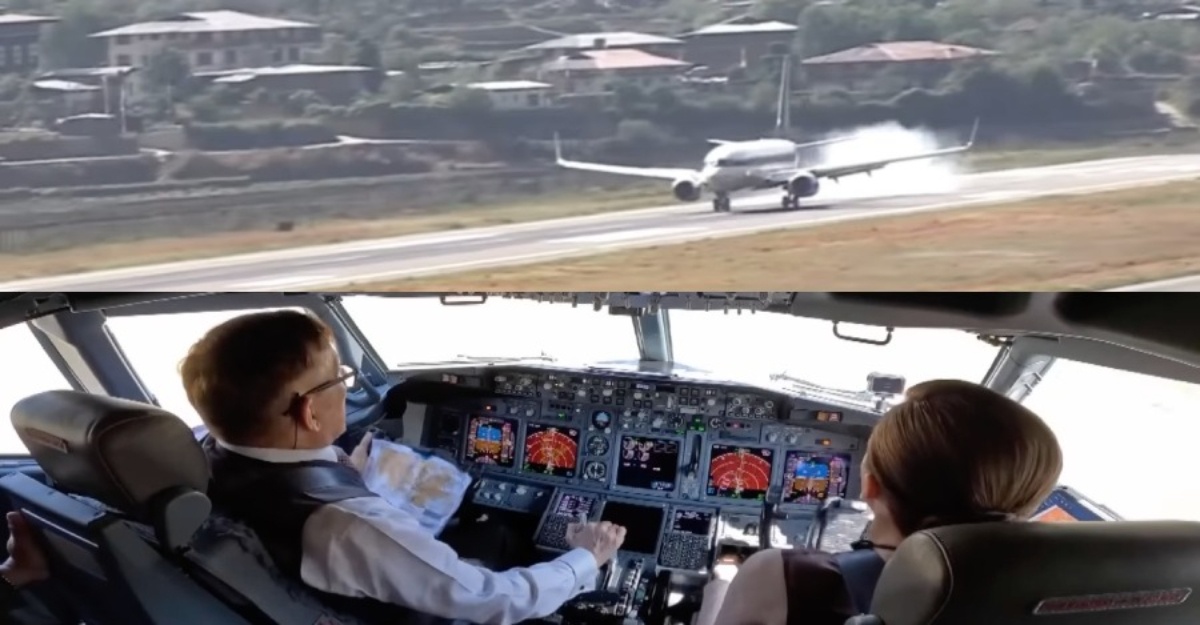 Bagi memastikan pendaratan tersebut berjalan lancar, pasangan Diraja tersebut turut mendapat bantuan pengemudian daripada seorang juruterbang Syarikat Penerbangan Diraja Bhutan, Drukair Corporation Limited yang mahir dengan landasan di sana.