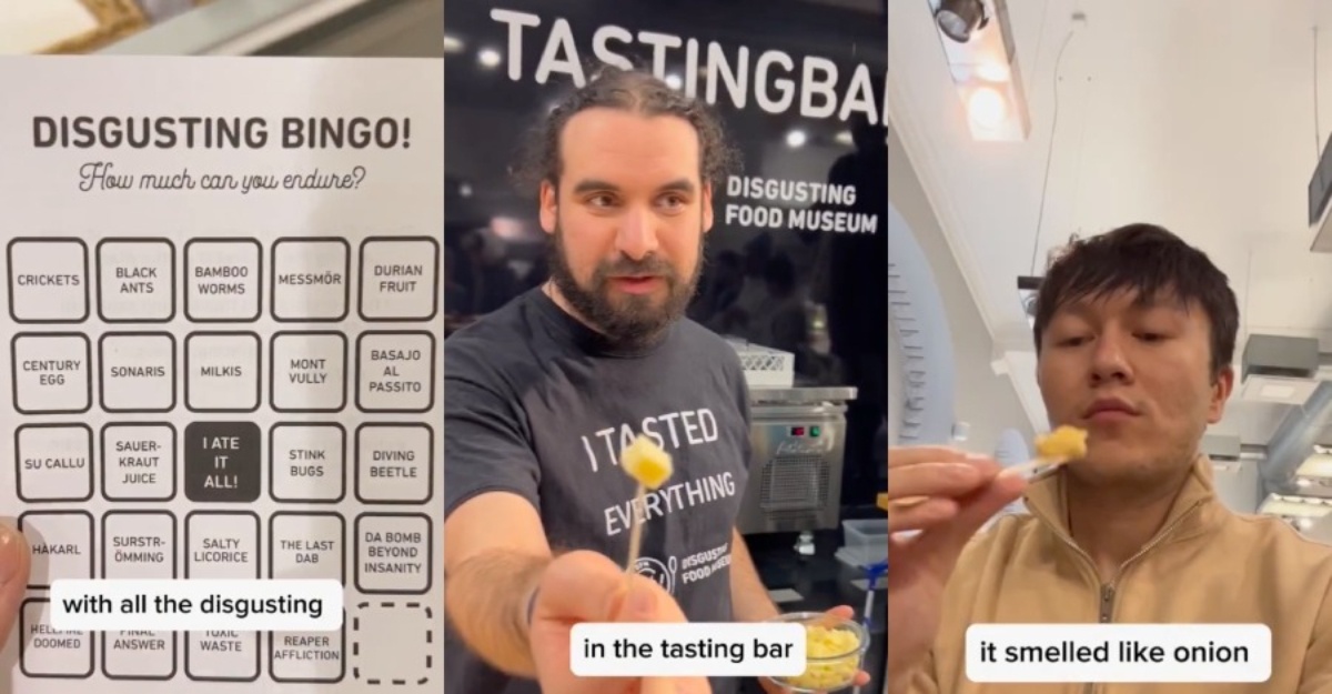 Pengunjung ke muzium tersebut diberi kad bingo yang boleh dicoret selepas mereka mencuba senara makanan menjijikan yang ada.