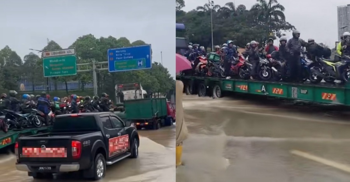 Redah Banjir, Pemandu Treler Dipuji Tumpangkan Penunggang Motor