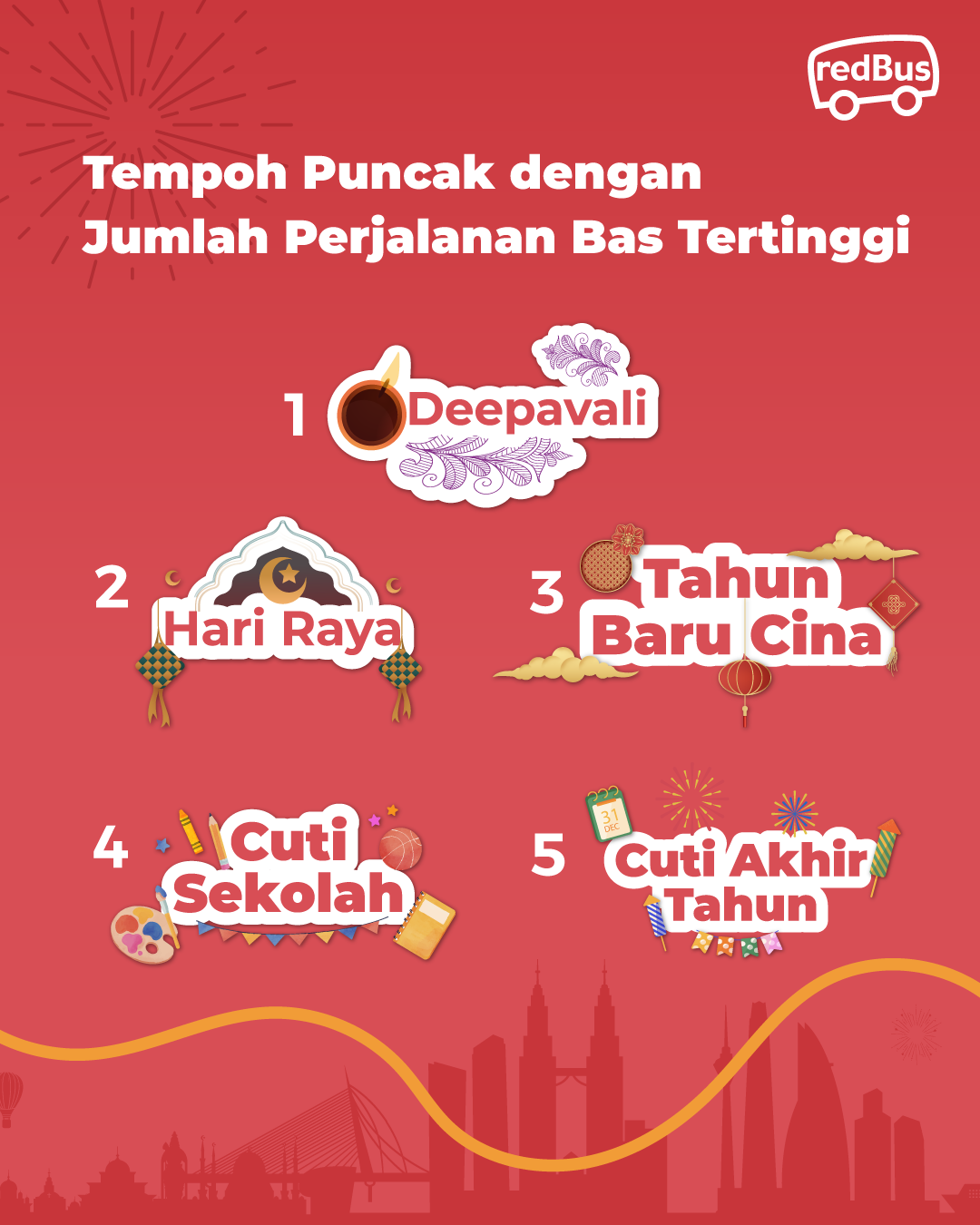 Semua data yang dinyatakan adalah berdasarkan transaksi di platform redBus sahaja bagi tahun kalendar 2025.