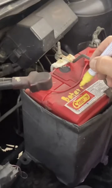 Menerusi video yang dikongsi, beberapa bahagian ditanda termasuk bateri kereta, penapis udara, fius dan minyak enjin.