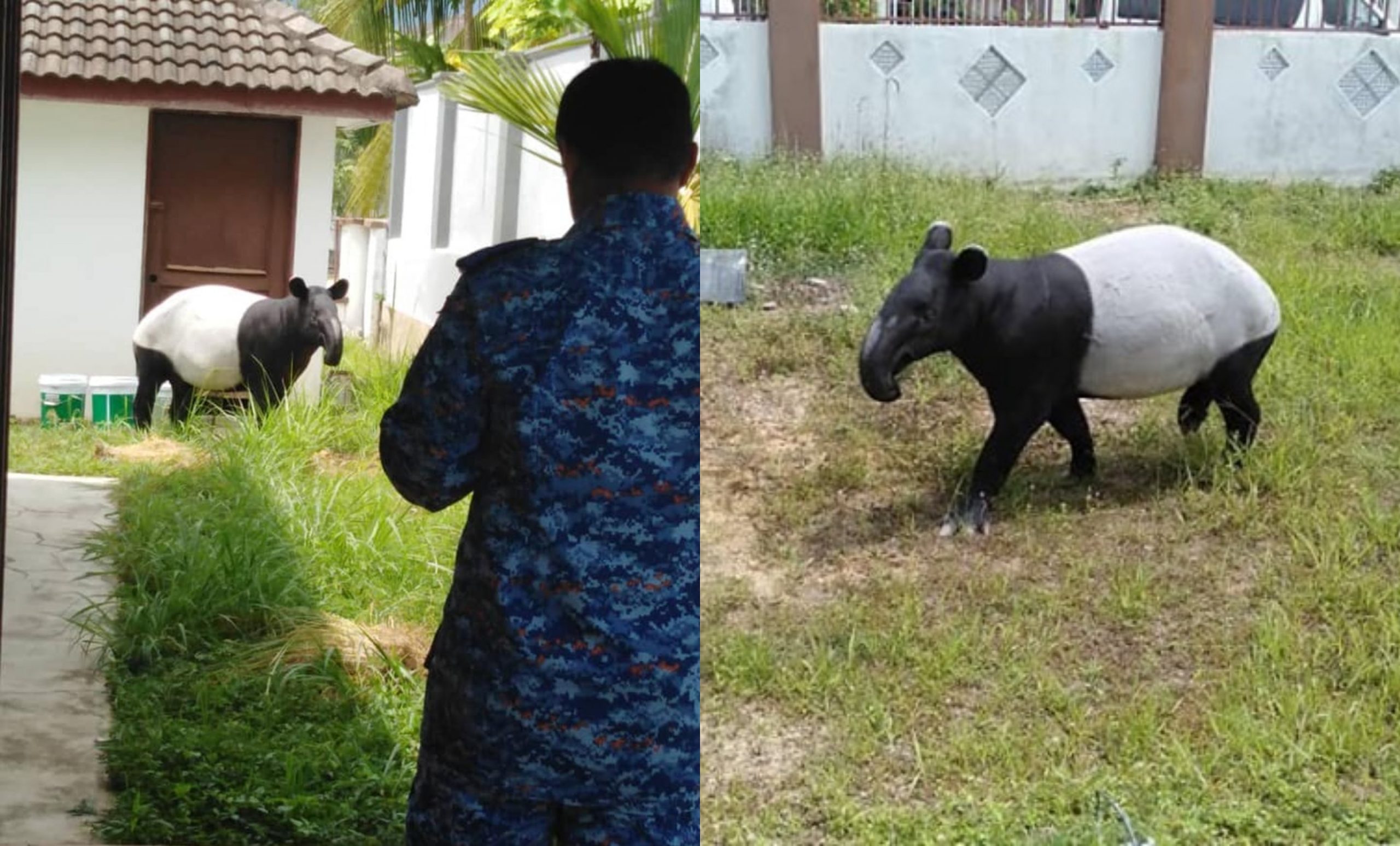 Mereka berjaya mengepung tapir tersebut dalam halaman sebuah rumah sebelum menghubungi Jabatan Perhilitan seterusnya menangkap haiwan terbabit.