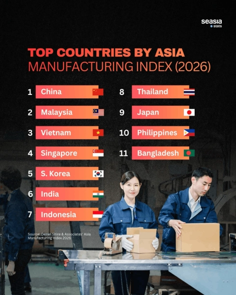 Dalam ranking terbaharu ini, China masih mendahului sebagai kuasa pembuatan terbesar di rantau ini, diikuti oleh Malaysia di tempat kedua dan Vietnam di tempat ketiga.