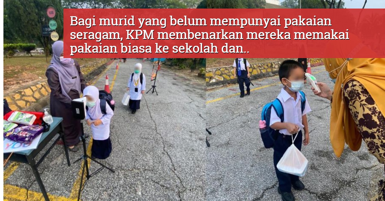 Bagi murid yang belum mempunyai pakaian seragam, Kementerian Pendidikan (KPM) membenarkan mereka memakai pakaian biasa ke sekolah dan kebenaran tersebut diberikan sehingga 26 Mac ini (apabila cuti penggal pertama bermula).