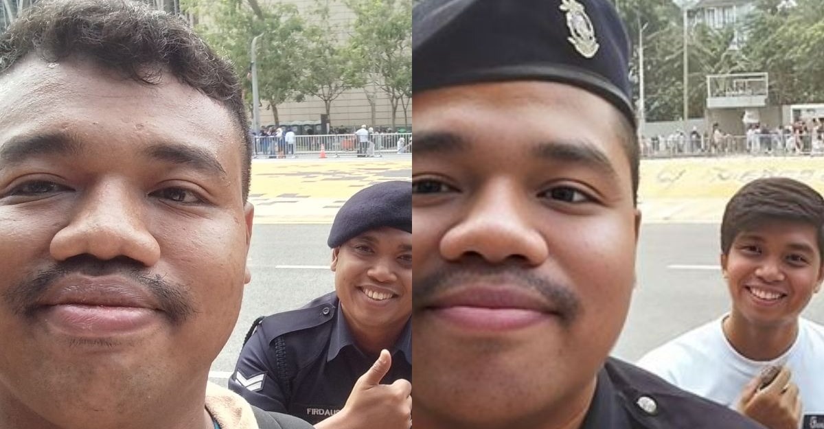Foto tersebut memaparkan Saiful bersama dua anggota polis yang bertugas ketika Majlis Sambutan Hari Kemerdekaan ke-67 bertempat di Dataran Putrajaya.
