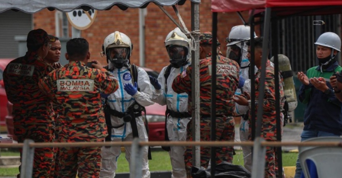 Tinjauan Bernama mendapati anggota JBPM mengenakan pakaian perlindung diri (PPE) berwarna putih berserta helmet pada 12 tengah hari dan 3.35 petang.