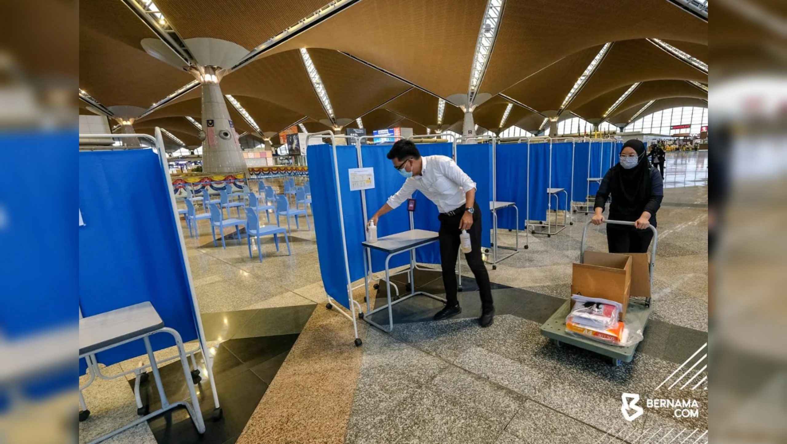 Kementerian Kesihatan Malaysia (KKM) telah bersiap-siaga menyediakan tempat ujian saringan kendiri Covid-19 di Lapangan Terbang Antarabangsa Kuala Lumpur (KLIA).