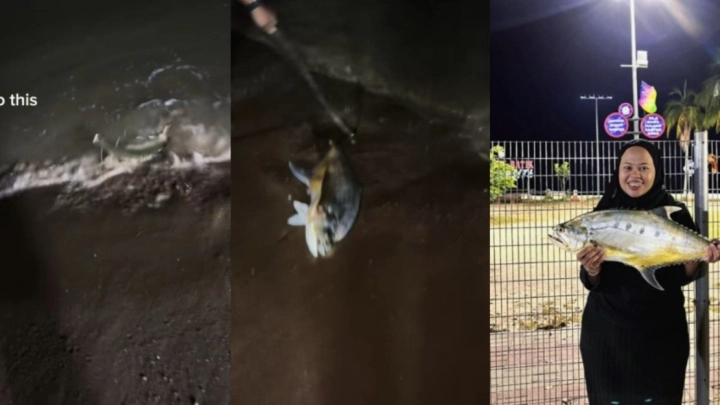 Menerusi video yang di muat naik di TikTok @nkb1300, pada awalnya wanita itu ingin menenangkan fikiran dengan merendam kaki dalam air pantai tetapi tidak lama kemudian ada seekor ikan talang besar tiba-tiba munculkan diri.