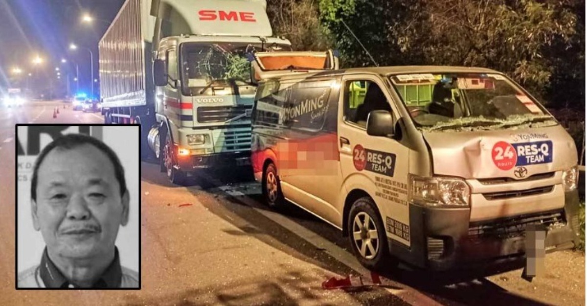 “Pelanggaran mengakibatkan van tersebut menggelongsor ke belakang dan menghimpit mangsa yang berada di tengah antara treler dan van,” katanya.