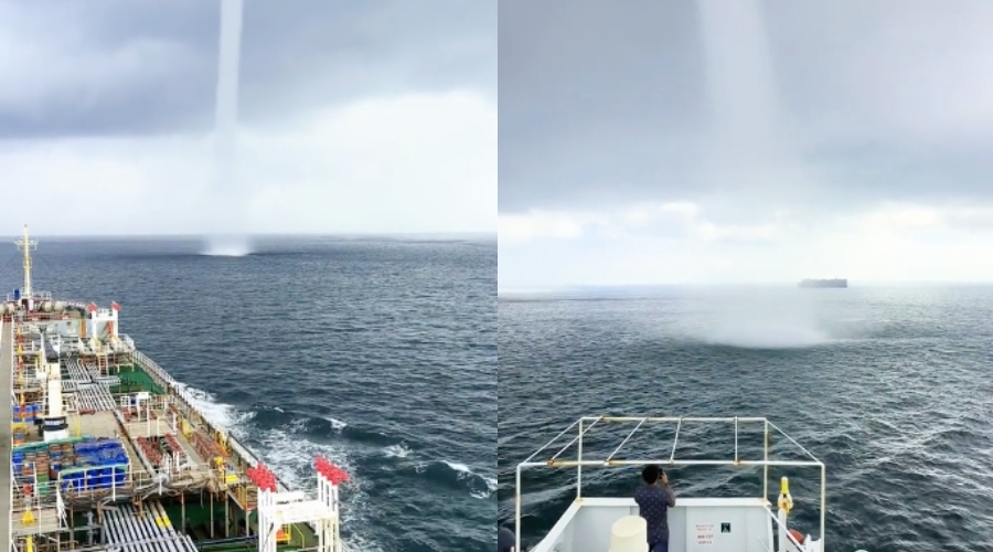 Teruja Bercampur Takut, Pekerja Atas Kapal Terpana Tengok Fenomena Belalai Air