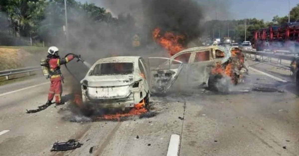 “Sebaik tiba di lokasi, kami dapati kebakaran membabitkan tiga kenderaan berpunca akibat kemalangan jalan raya,” ujarnya pada hari Isnin.