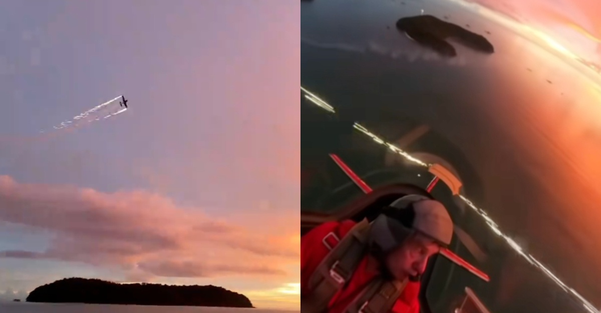 Bayangkan berada di ketinggian ratusan kaki di udara, menerbangkan pesawat, sambil menyaksikan keindahan langit Langkawi yang berwarna jingga keemasan menjelang senja.