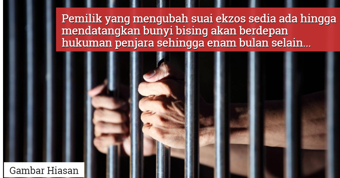 KUALA LUMPUR, 22 Feb (Bernama) — Pemilik kenderaan yang didapati membuat kesalahan mengubah suai ekzos sedia ada hingga mendatangkan bunyi bising akan berdepan hukuman penjara sehingga enam bulan selain berhadapan hukuman denda sehingga RM2,000.