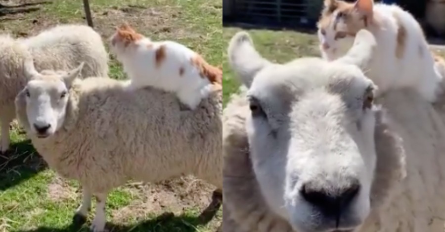 Pun begitu, berbeza pula dengan video tular ini yang menyaksikan seekor kucing sedang ‘mengurut’ biri-biri.
