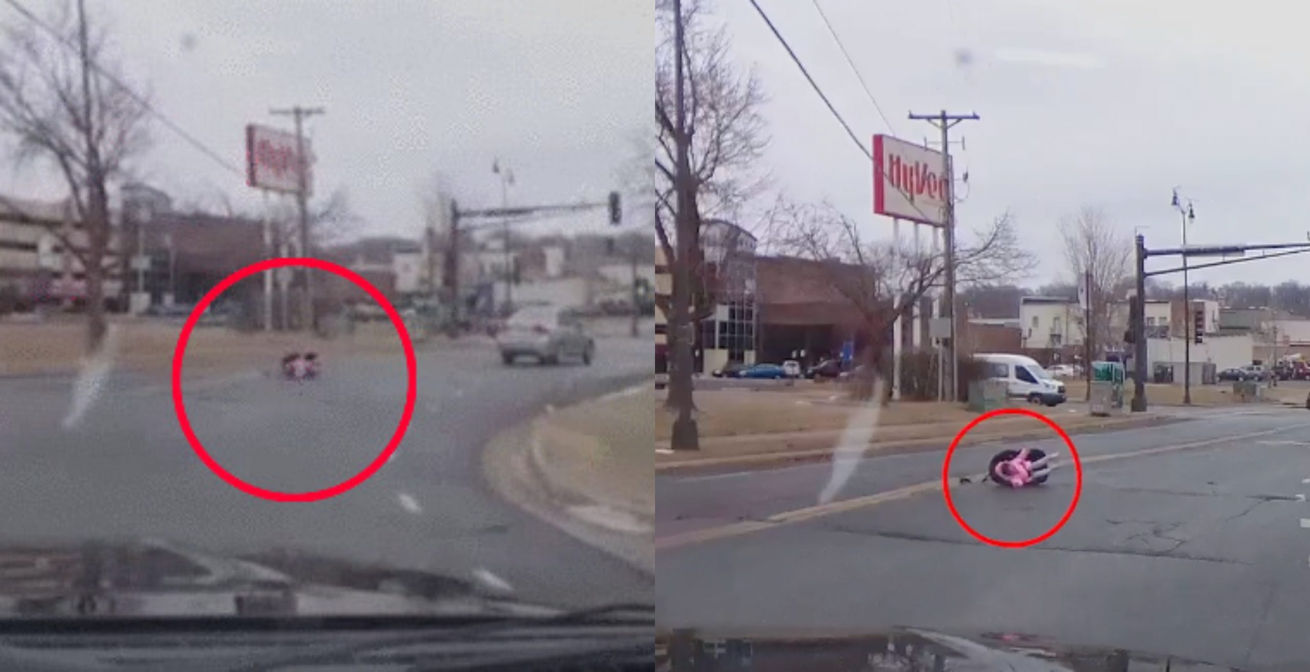 Insiden yang berlaku di Mankato, Amerika Syarikat itu melibatkan seorang kanak-kanak perempuan yang berusia dua tahun. Namun, mujurlah kanak-kanak tersebut diletakkan di dalam baby carseat ketika dia terjatuh di atas jalan.