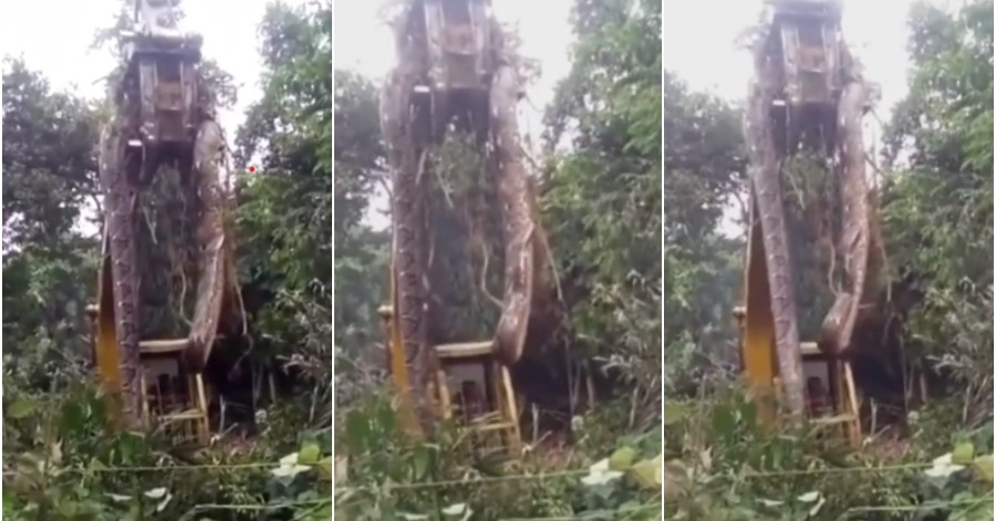 Video tersebut telah dikongsikan melalui akaun media sosial Instagram bernama @fakta.indo itu menunjukkan sebuah jentera eskavator mengangkat seekor ular sawa yang besar itu ke udara.