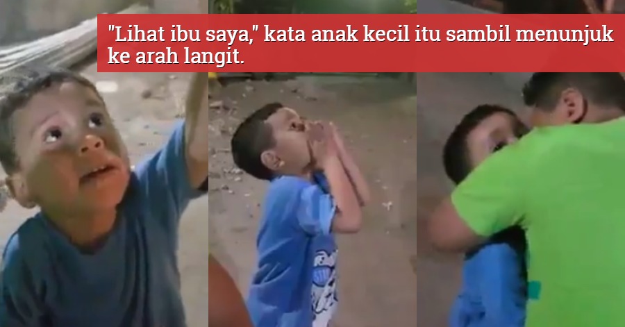 Menghibakan. Seakan tidak memahami hakikat sebenar, seorang anak kecil memanggil ibunya yang telah meninggal dunia di langit.
