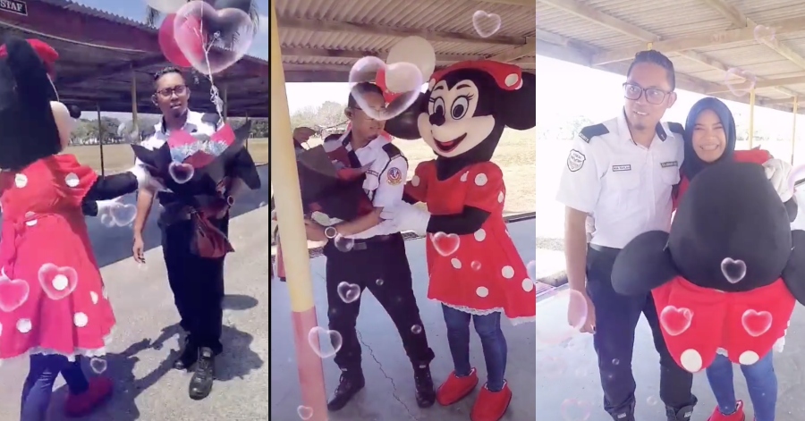 Si isteri memberi kejutan dengan memakai baju kostum maskod sebagai Minnie Mouse. Tetapi apa yang mencuri perhatian warganet, lelaki ini sungguh-sungguh ingin mengelak diri daripada dirangkul wanita tersebut.