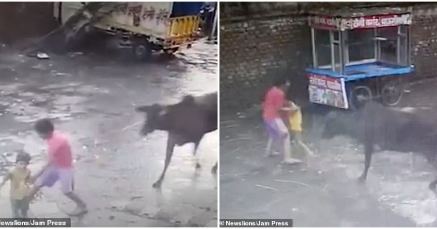 Seekor lembu liar secara tiba-tiba mengamuk dan menyerang dua orang kanak-kanak di India yang sedang melalui sebuah jalan yang terletak di daerah Rewari di Haryana bersama abangnya, lapor Daily Mail.
