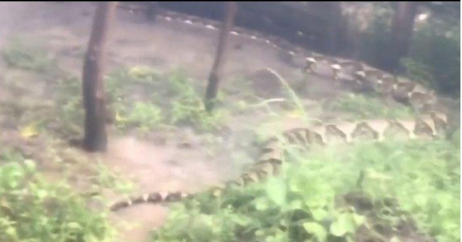 Seekor ular sawa berukuran besar telah menggemparkan penduduk di Desa Mekarsari Kecamatan Kintap, Kalimantan Selatan. Video yang viral di media sosial itu memperlihatkan seekor ular sawa berwarna kuning keputihan dan hitam sedang bergerak perlahan menuju ke pokok betik dan pokok getah di sebuah kebun.