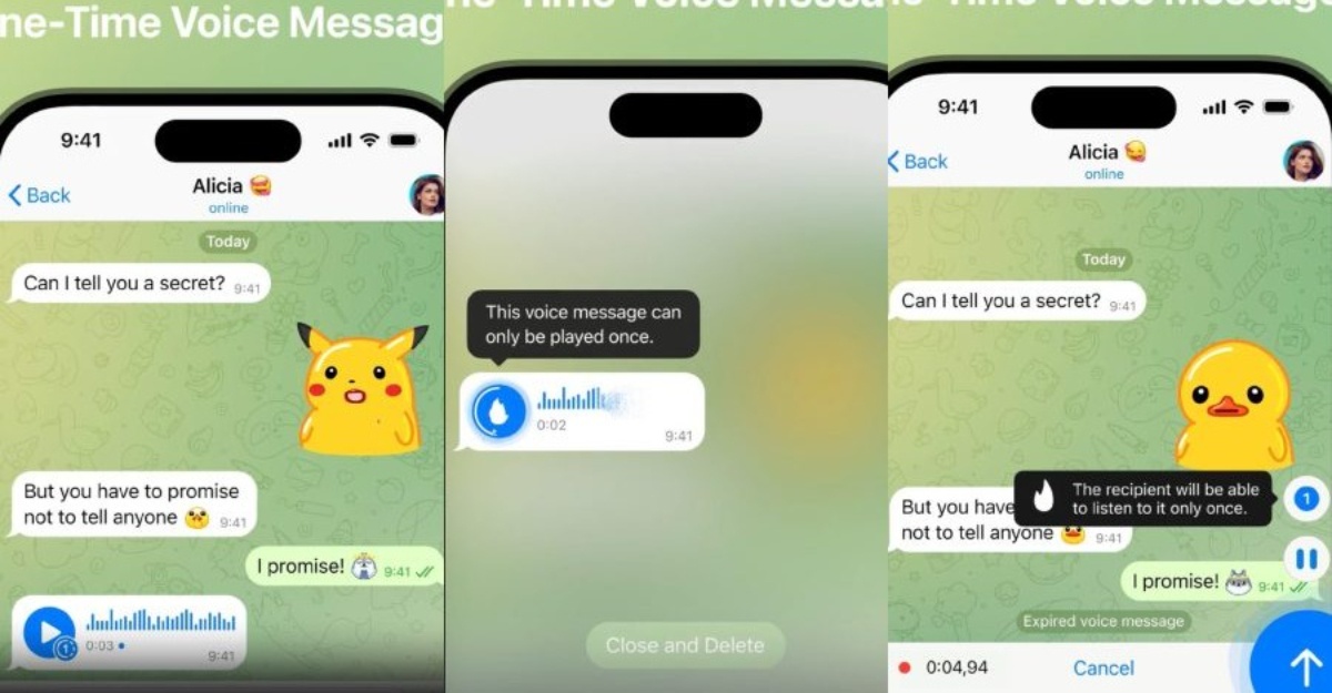 Video & Pesanan Suara Boleh Dibuat Secara ‘View Once’ Di Telegram