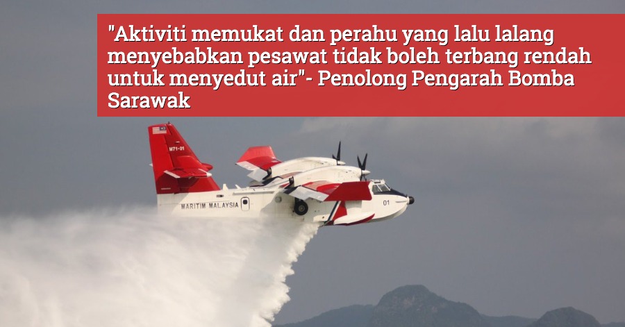 Penolong Pengarah (Operasi) Bomba Sarawak, Tiong Ling Hii berkata faktor air sungai yang surut dan terdapat halangan di sungai seperti aktiviti memukat dan perahu yang lalu lalang menyebabkan pesawat tidak boleh terbang rendah untuk menyedut air.