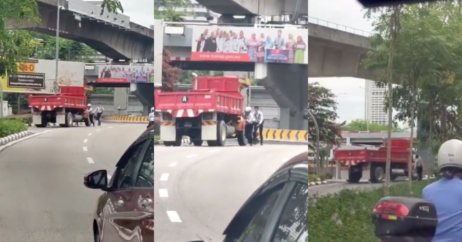 Adegan yang dirakam oleh orang awam itu memperlihatkan lori tersebut berjaya dialihkan dan tidak lagi menghalang laluan.