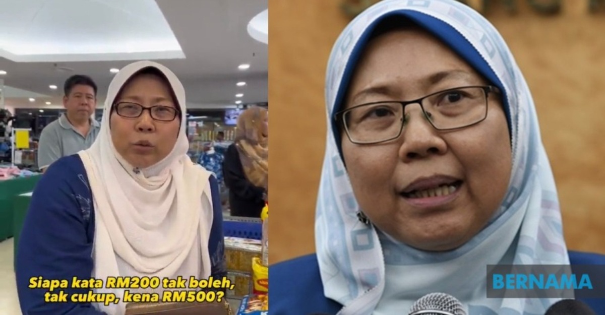 Video berkenaan memaparkan beliau membayar beberapa barangan berjumlah RM136.30 dan berpuas hati kerana dapat membelinya pada harga bawah RM200.