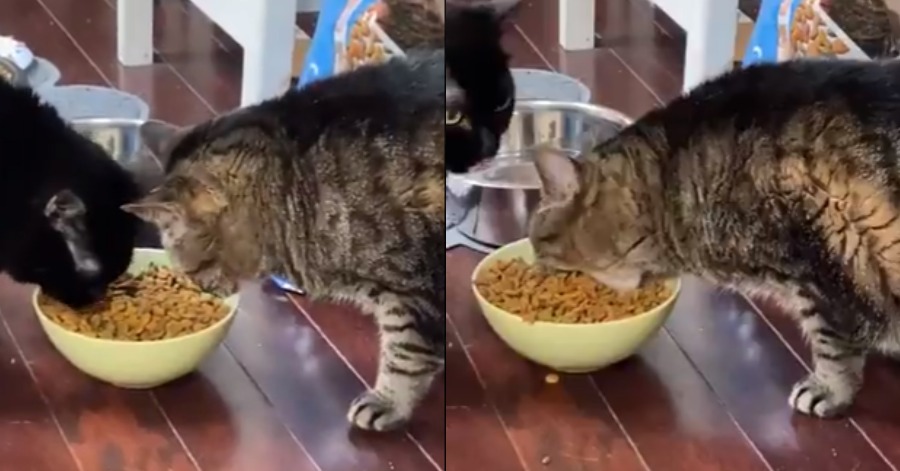 Walaupun pada awalnya kucing tersebut hanya menunggu gilirannya untuk makan, namun gelagatnya itu telah menyebabkan rakaman tersebut tular di media sosial.