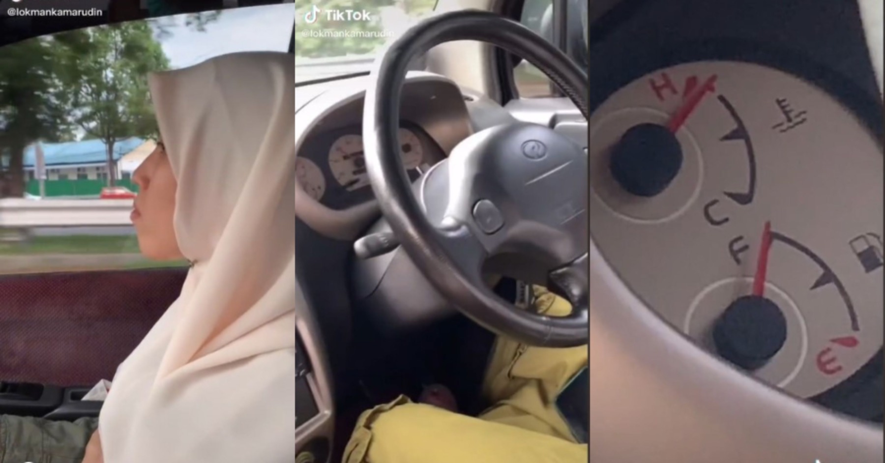 Tapi apabila Lokman menghalakan kamera telefon ke arah papan pemuka, rupa-rupanya jarum tolok suhu sudah menginjak ke ‘H’. Ini bermakna enjin kereta mereka dipercayai sedang terlalu panas.