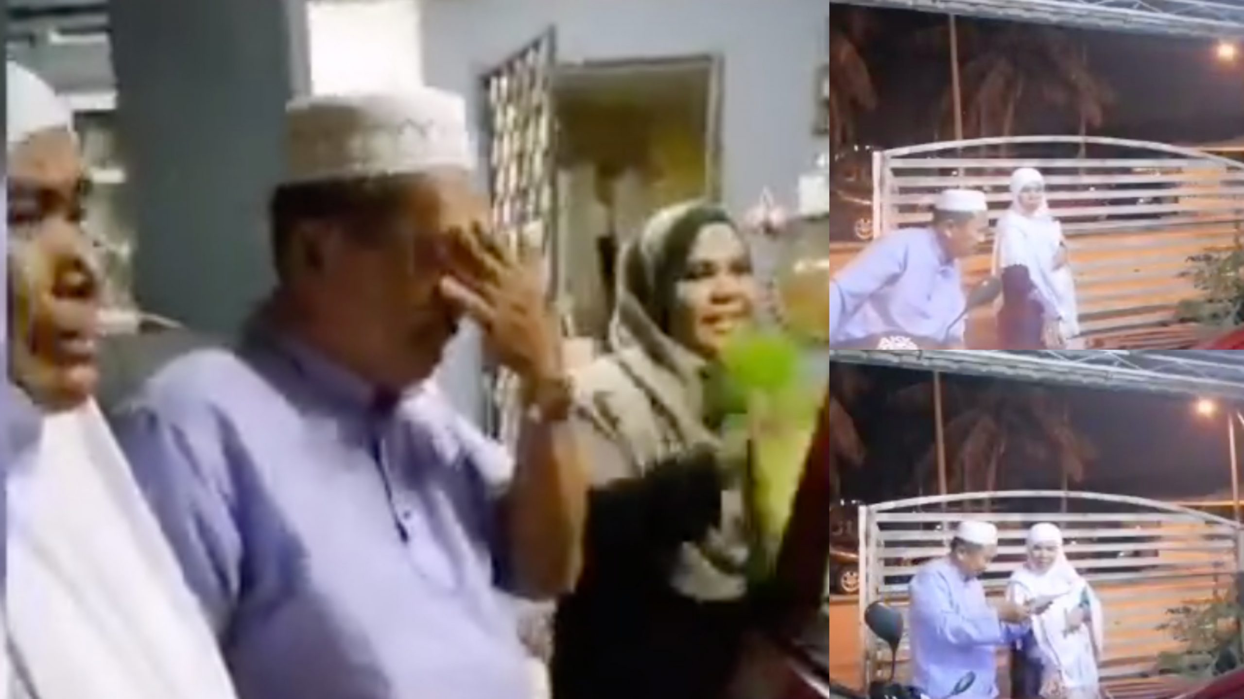 Namun, selepas mereka membaca sekeping nota yang bertulis “Happy Anniversary Mak Abah 35th” yang ditinggal di atas cermin hadapan kereta berkenaan, mereka sudah mula menyedari bahawa kereta itu adalah milik mereka yang dihadiahkan oleh anak-anak.