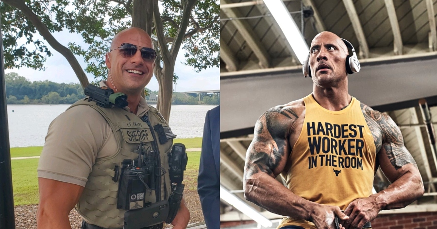 Lantaran itu, Dwayne telah memberi respon terhadap perbandingan berkenaan semalam dengan mengulangciap gambar dirinya dan polis tersebut dalam satu ciapan di Twitter.
