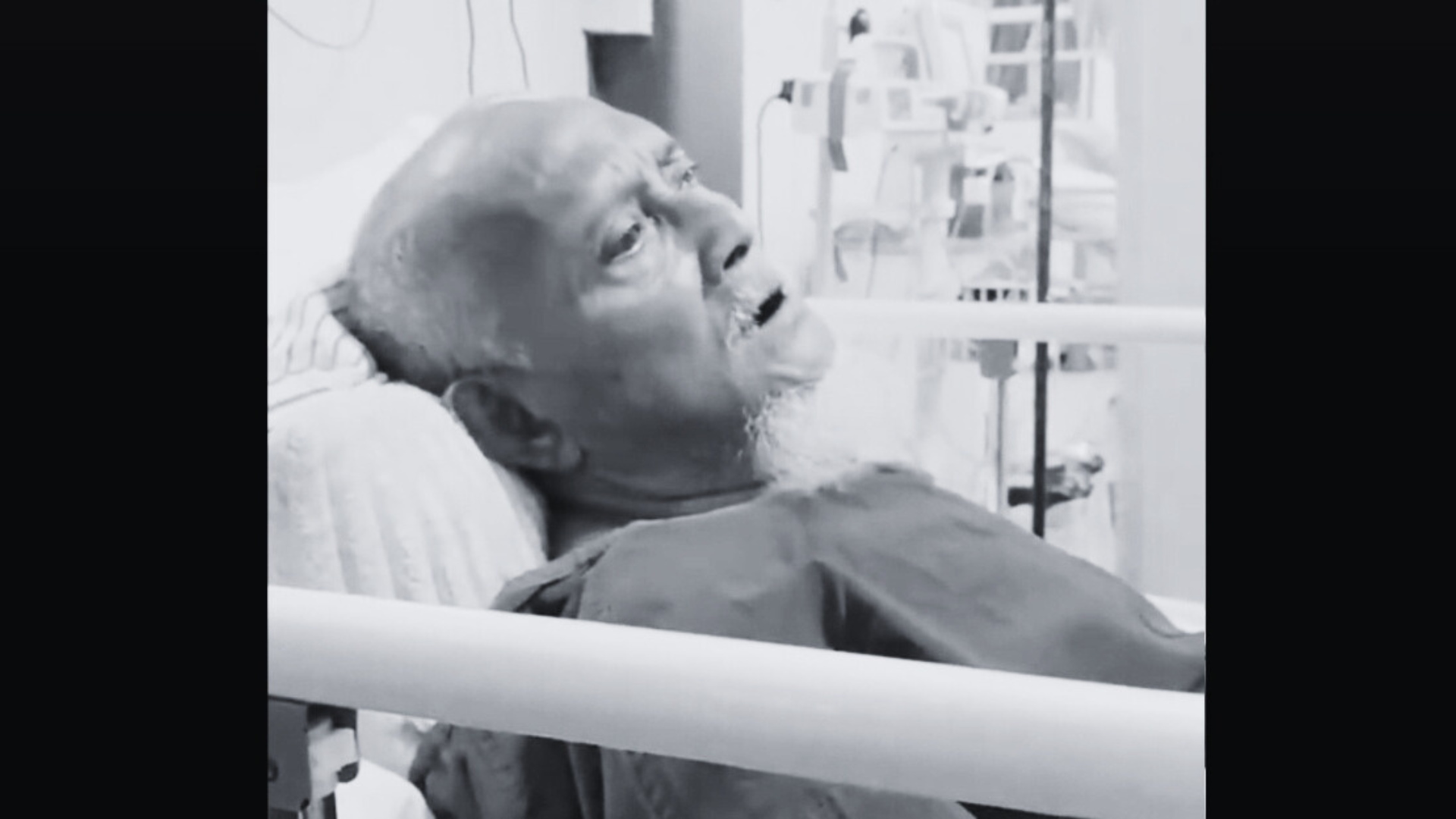 Dalam video berdurasi 20 saat itu, kelihatan si ayah sedang berbaring di atas katil hospital, ditemani anak-anaknya.