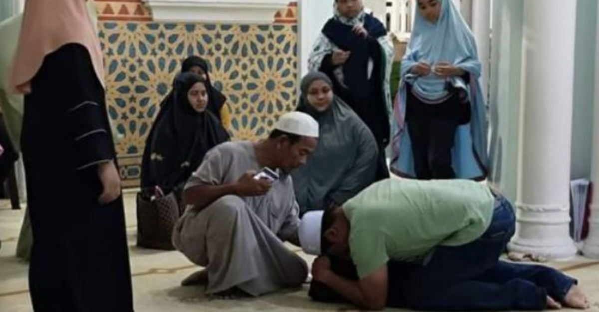 “Wanita itu hadir ke masjid bersama suaminya dan mereka terlebih dulu berbuka puasa sebelum menunaikan solat jemaah serta membaca surah Yasin bersama jemaah lain di masjid ini.