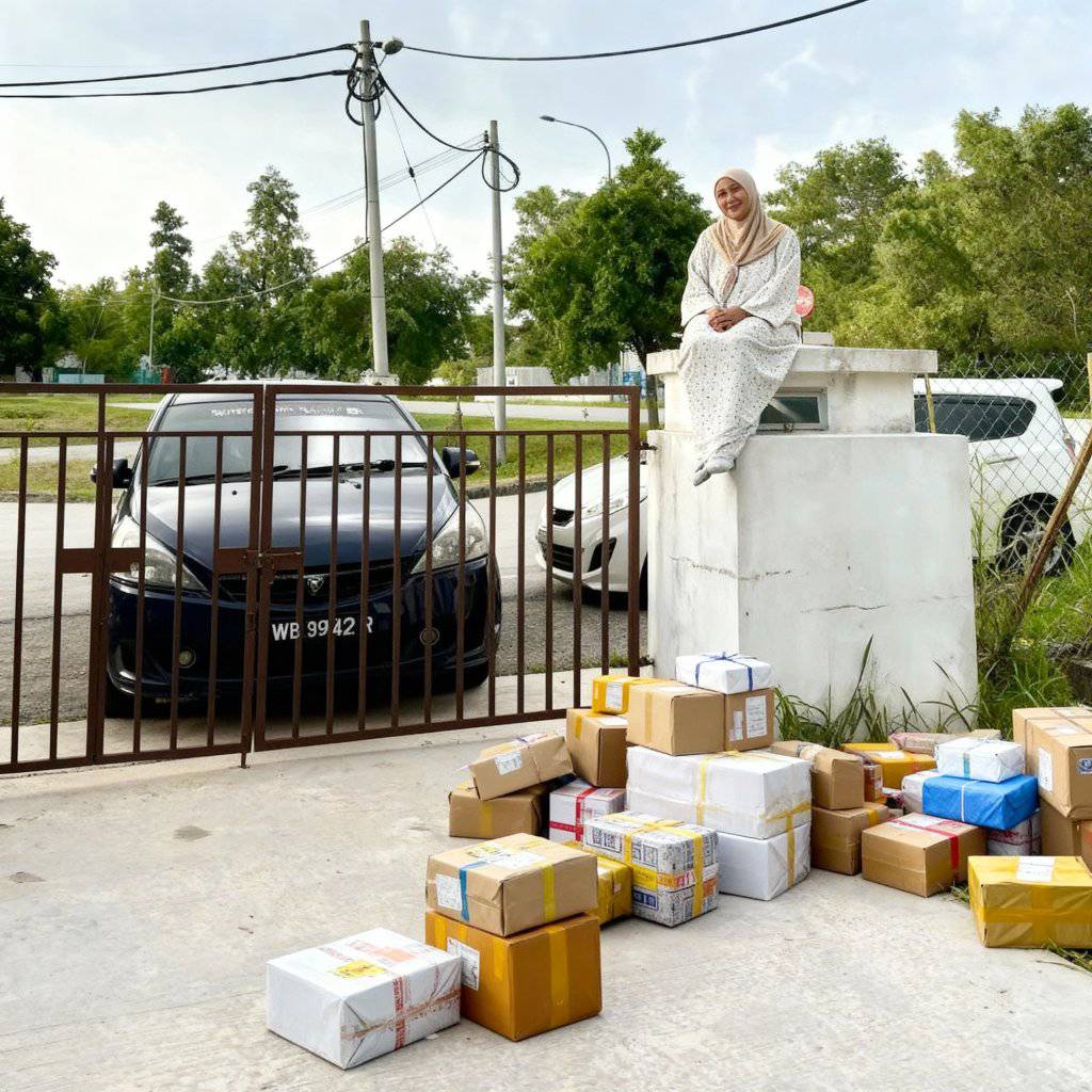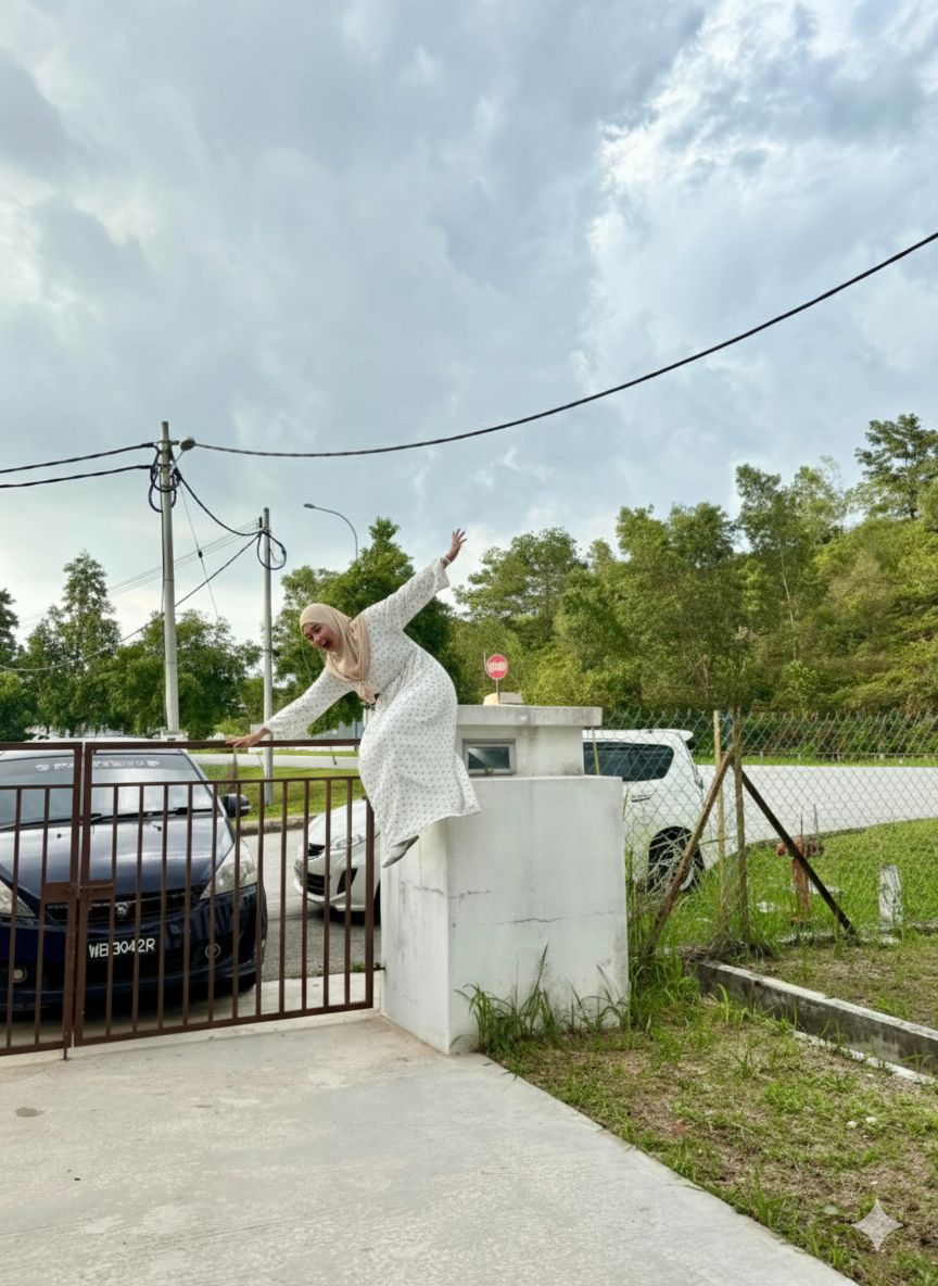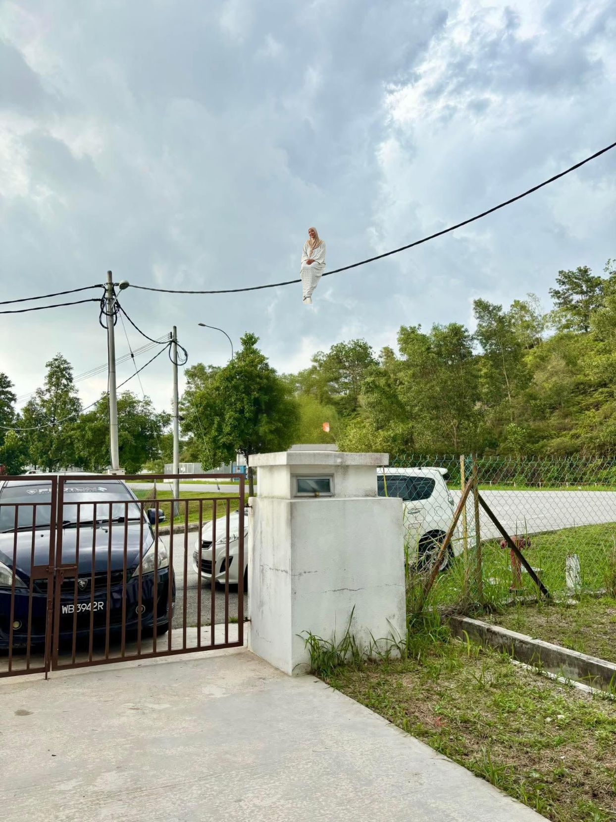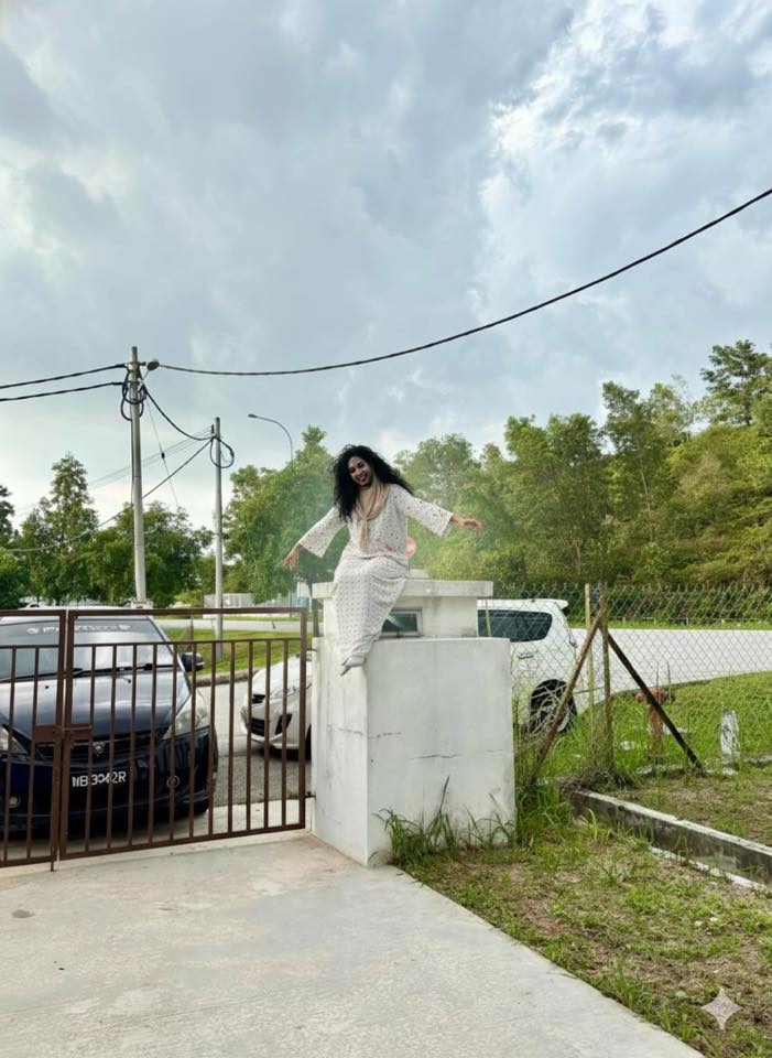 Dalam hantaran tersebut, wanita itu meminta pertolongan orang ramai untuk menyunting gambar dirinya yang sedang duduk di atas tiang pagar rumah tampak lebih seram.