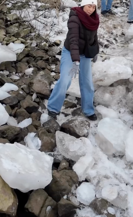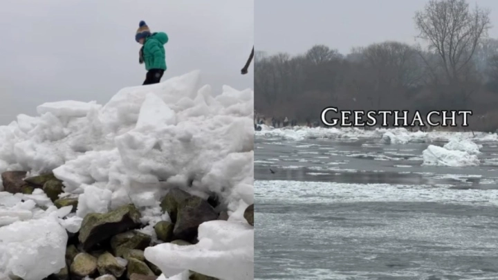 Berada di Bandar Geesthacht, wanita tersebut berpeluang merakam pengalaman sendiri turun ke tebing Sungai Elbe. Menerusi video yang dimuat naik, kelihatan orang ramai mengerumuni tebing sungai tersebut yang penuh dengan bongkah ais gergasi.