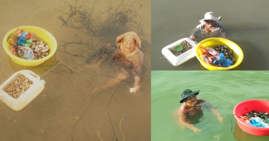 Demi Rawat Anak Sakit, Nenek 85 Tahun Cekal ‘Berenang’ Setiap Hari Cari Hasil Laut Untuk Dijual